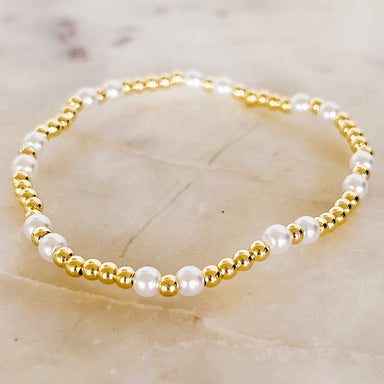 $22.00| /Bring some sparkle to your accessory collection with this fabulous ball-beaded bracelet! Creamy pearls pair beautifully with gleaming gold & si...