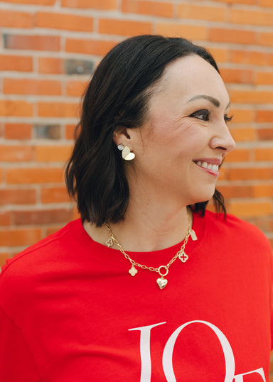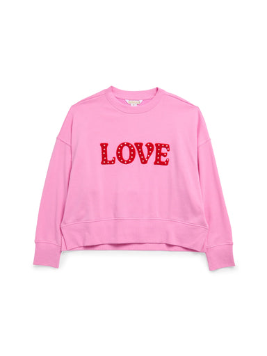 Say it loud and proud in our “Love” Relaxed Sweatshirt! This pink pullover is made from soft cotton and features bold red chenille lettering accent...