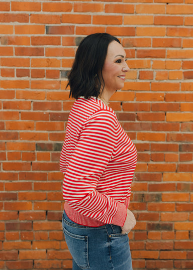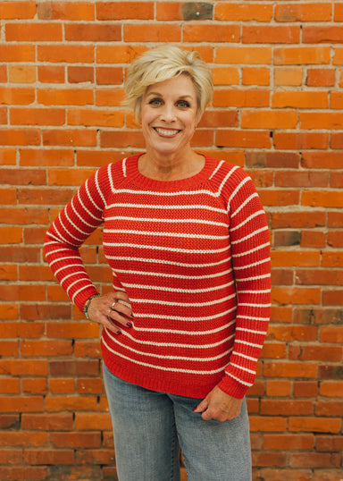 Elevate your everyday wardrobe with this charming Mini Waffle Striped Sweater. The textured waffle knit adds visual interest and dimension, while c...