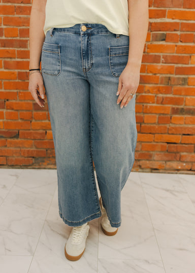 These pants feature a flattering high rise and bold, dramatic wide legs that give them a striking, retro style. The addition of patch pockets adds ...