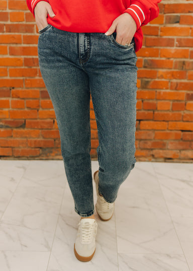 These high-rise mom jeans bring a classic silhouette to modern comfort with subtly structured, stretchy material that moves with you. Finished in a...