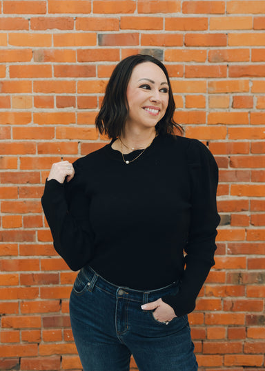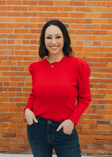 Elevate your winter wardrobe with this stunning ribbed puffed long sleeve sweater. The textured ribbed knit pairs beautifully with voluminous puffe...