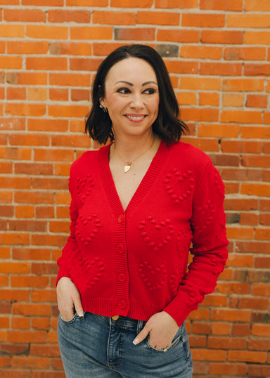 Made from breathable cotton yarn, this cardigan combines cozy texture with a relaxed fit that’s easy to layer. The dimensional heart-stitch detail...