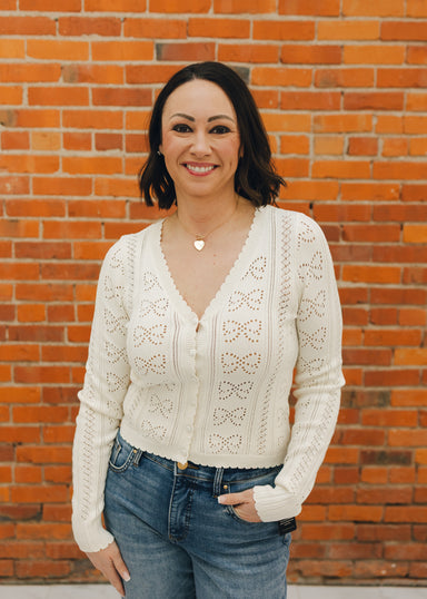 Delicate pointelle stitching and a lightweight EcoVero yarn give this cardigan a feminine, elevated feel. The button-front design fits close to th...