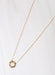 This thin necklace features an open circle charm with accent etching. Made with brass and gold dipped.