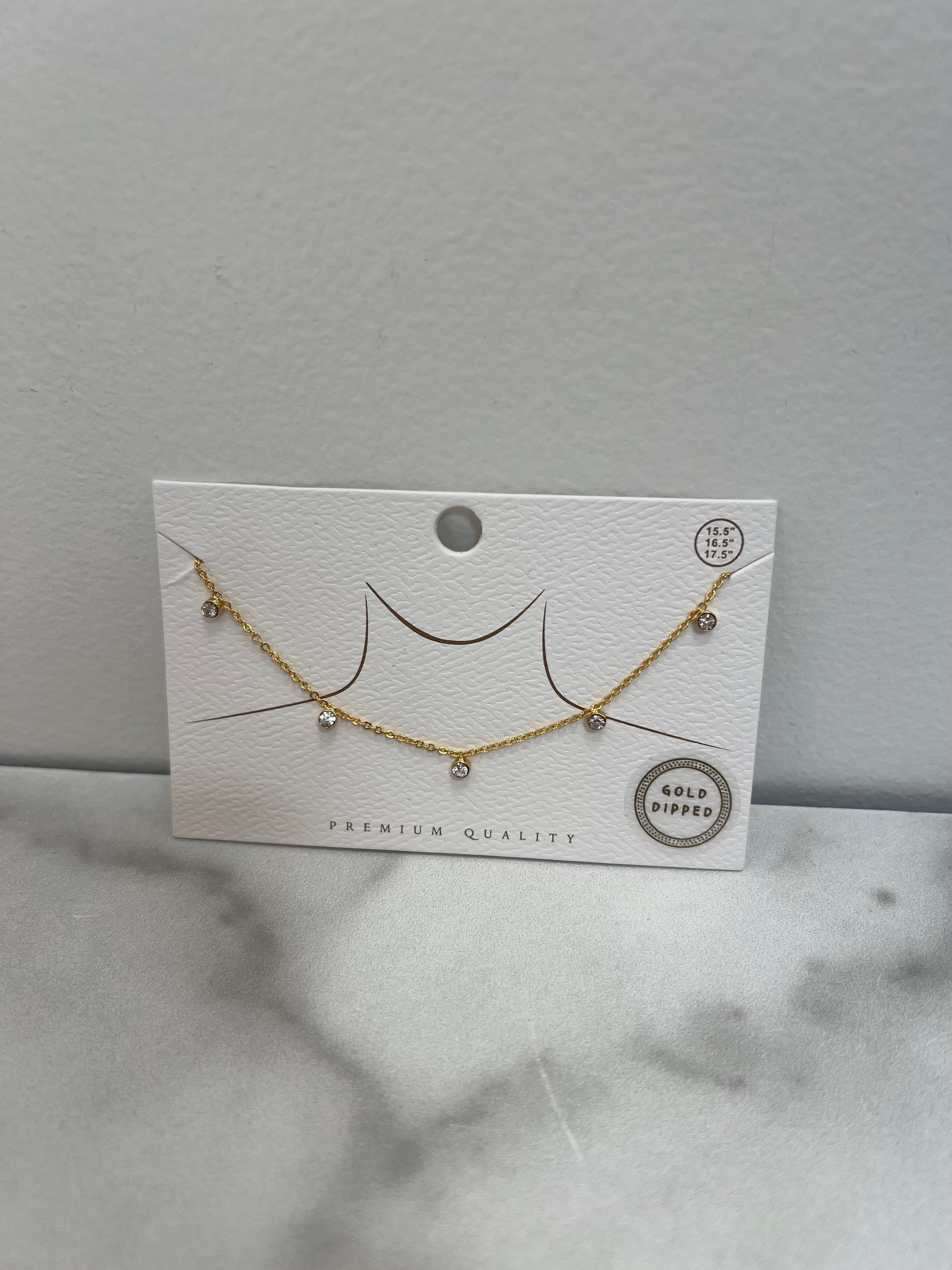 Add some sparkle to your everyday look with our Dainty CZ Dangles Necklace! This delicate necklace features shimmering cubic zirconia stones that catch the light and make you shine. Perfect for any occasion, this necklace is a must-have for your jewelry collection.