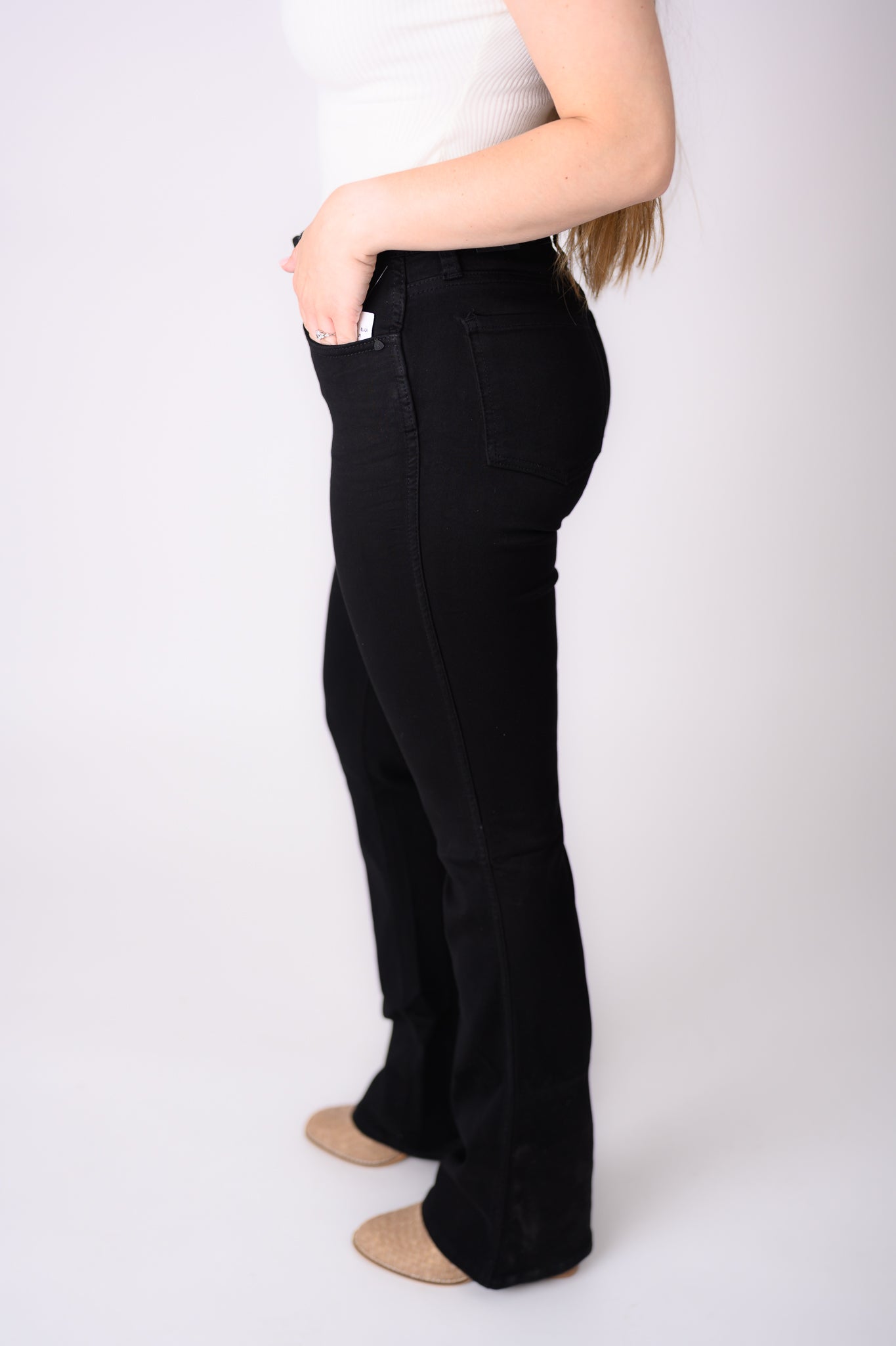 - Designed with front pocket technique that is flattening, slenderizing and provides comfort. Elongate your legs with our Natalie bootcut jeans. Crafted in a sweet silhouette that will never go out of style, this pair is made up of our sleek black denim.