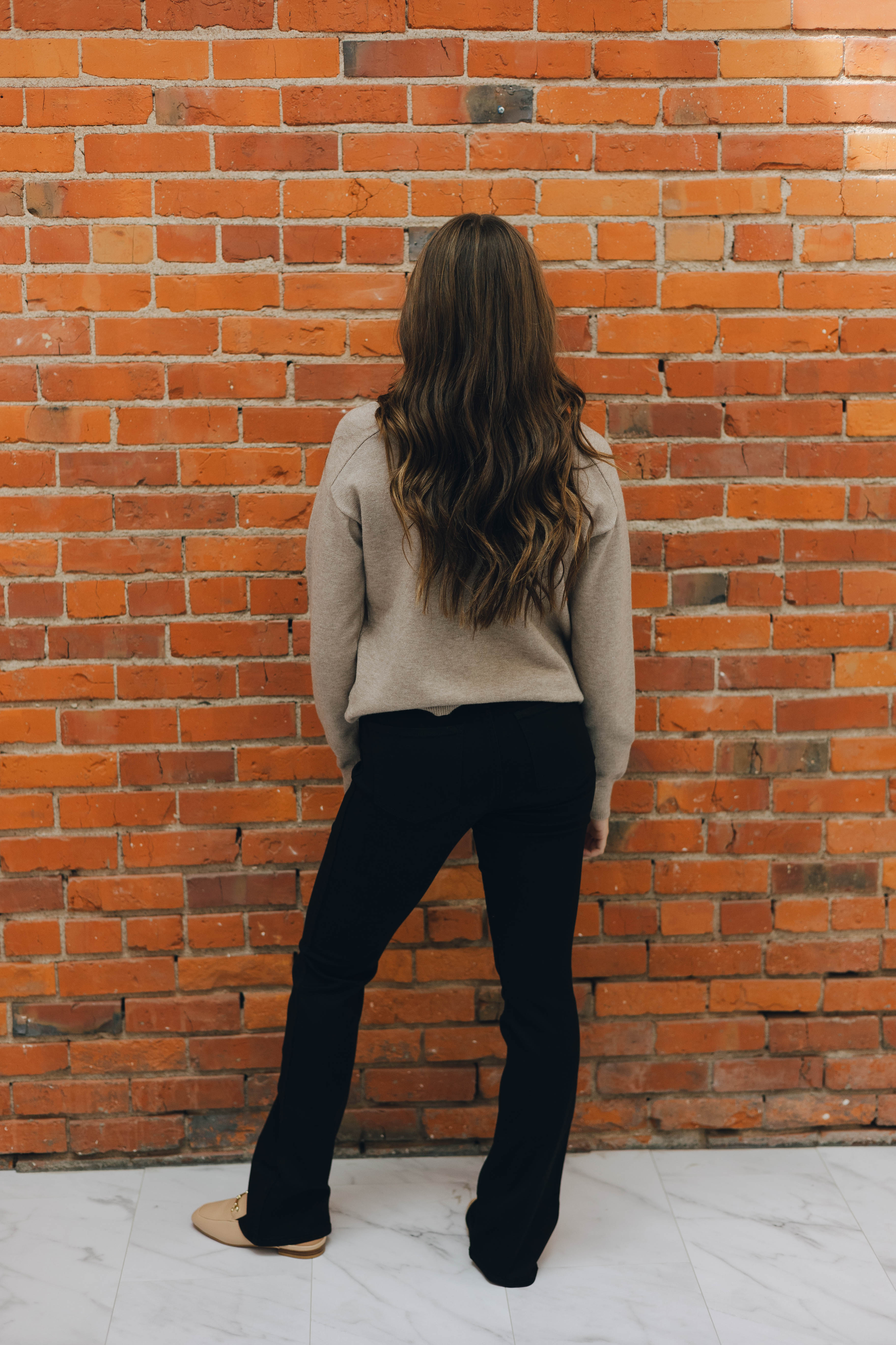 Mid-Rise bootcut jean in our must-have Black Rinse wash. Slim through the hips and thighs and releases at the knee and leg opening to create the beautiful bootcut shape.