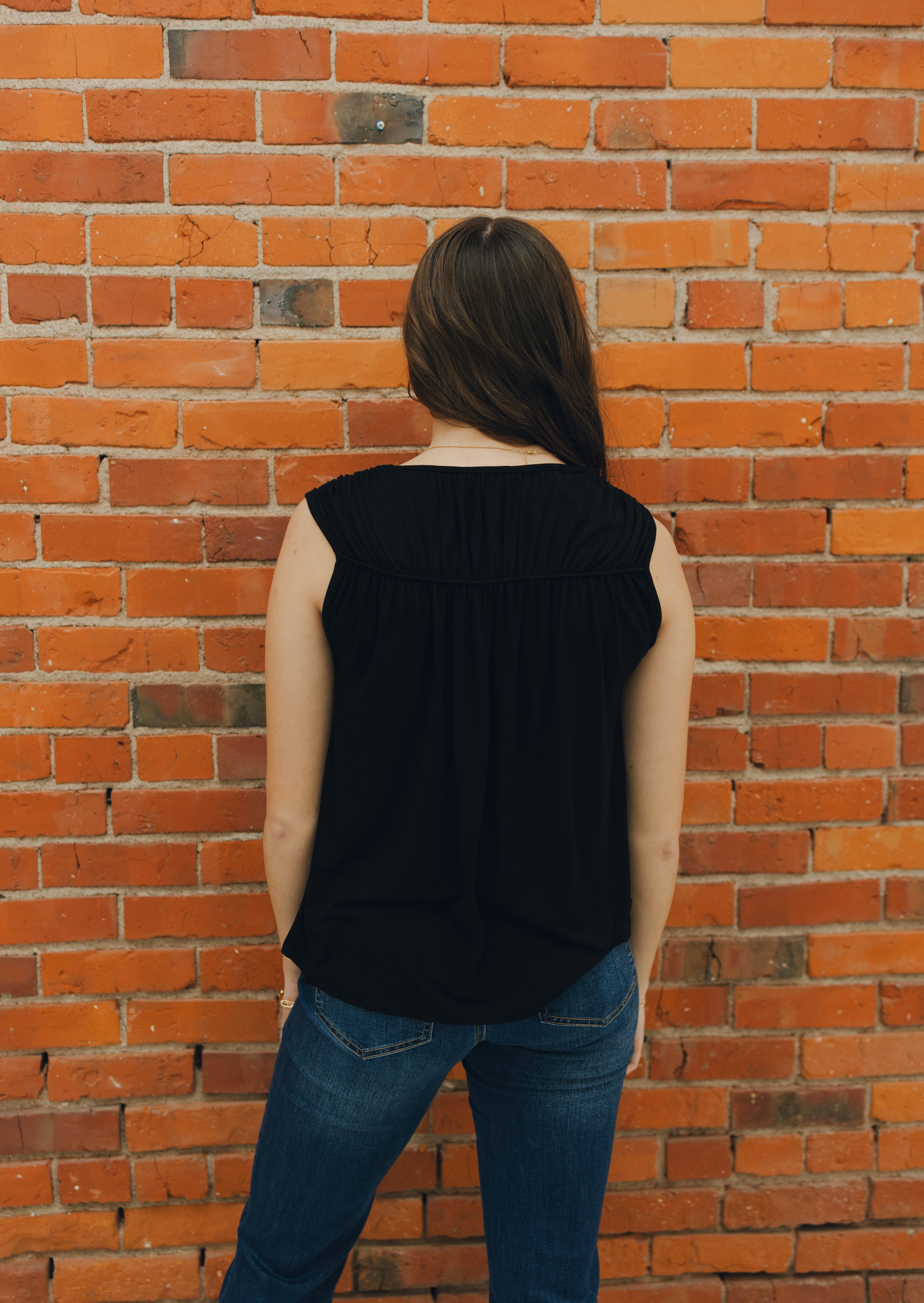 Transform your wardrobe with our stunning sleeveless shirred detail knit top, designed to effortlessly drape over your figure. The shirred details add a touch of elegance and texture, making it ideal for layering or standing out on its own.