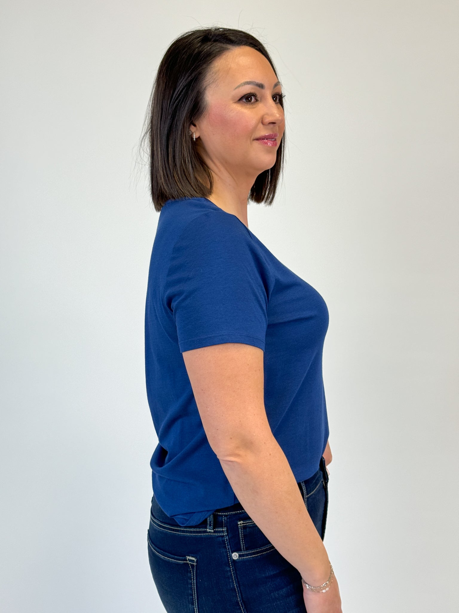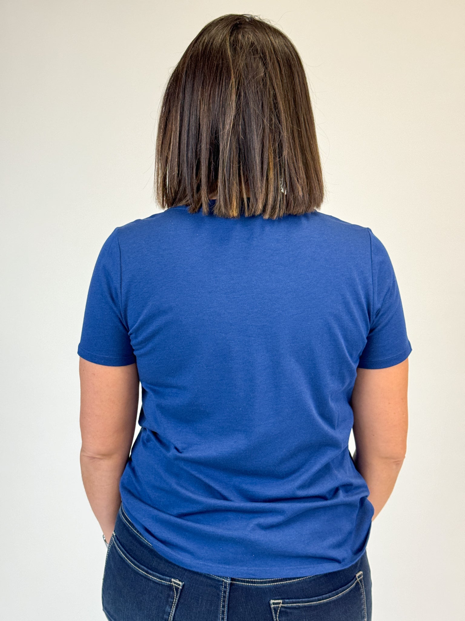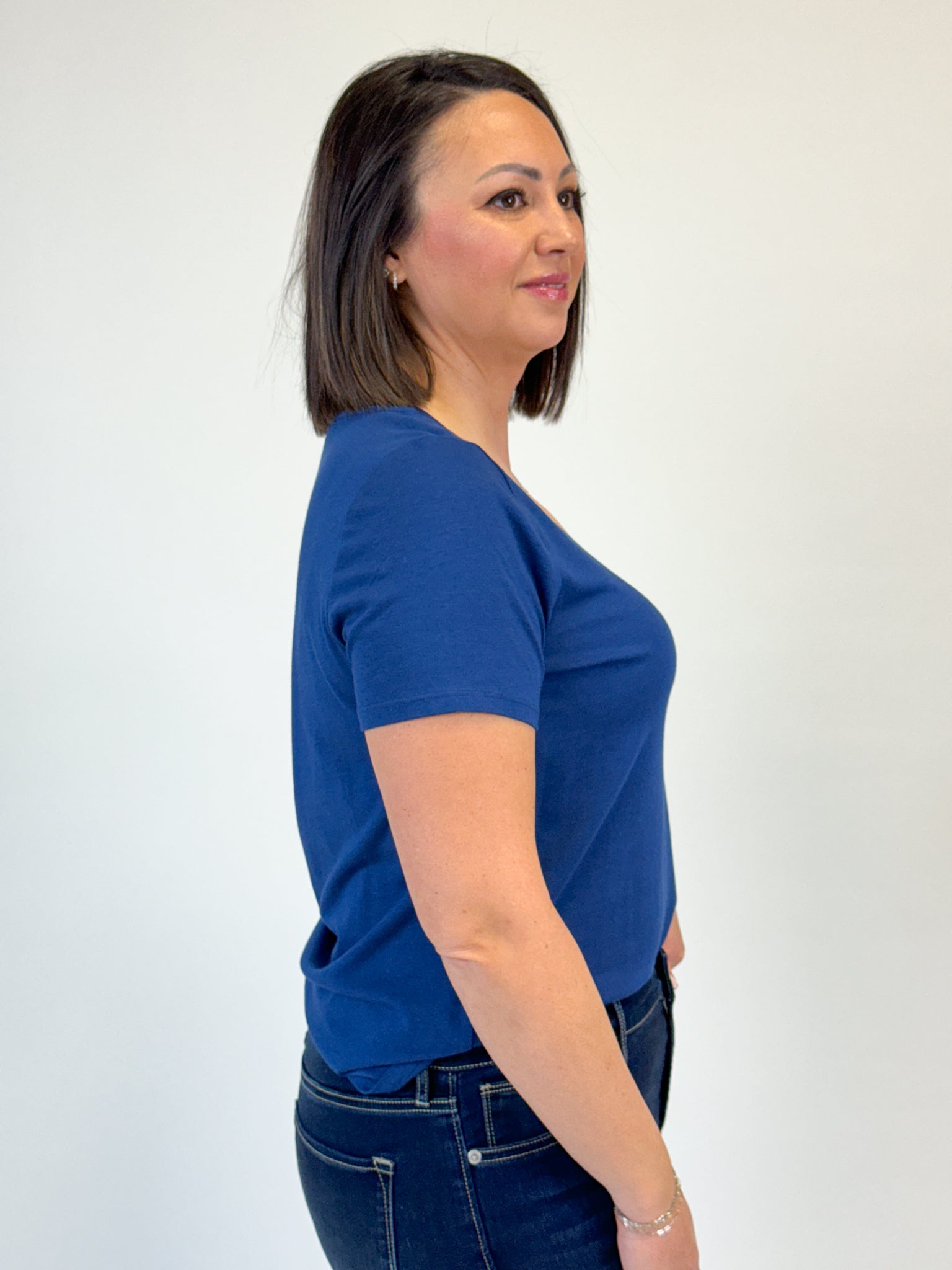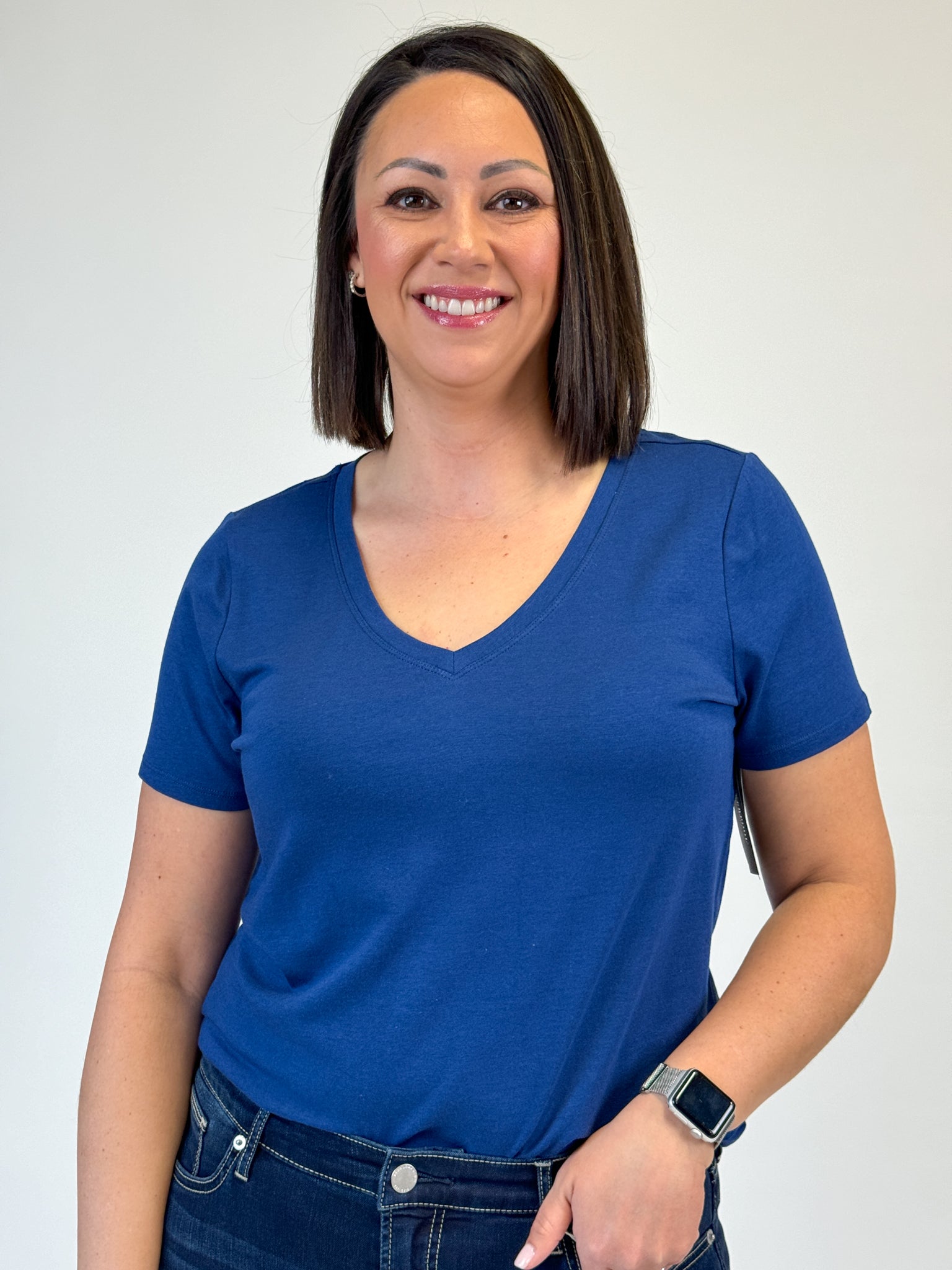 There's nothing better than a classic v-neck tee. This tee is the perfect layering piece to wear underneath your favorite blazer or sweater no matter the season.