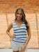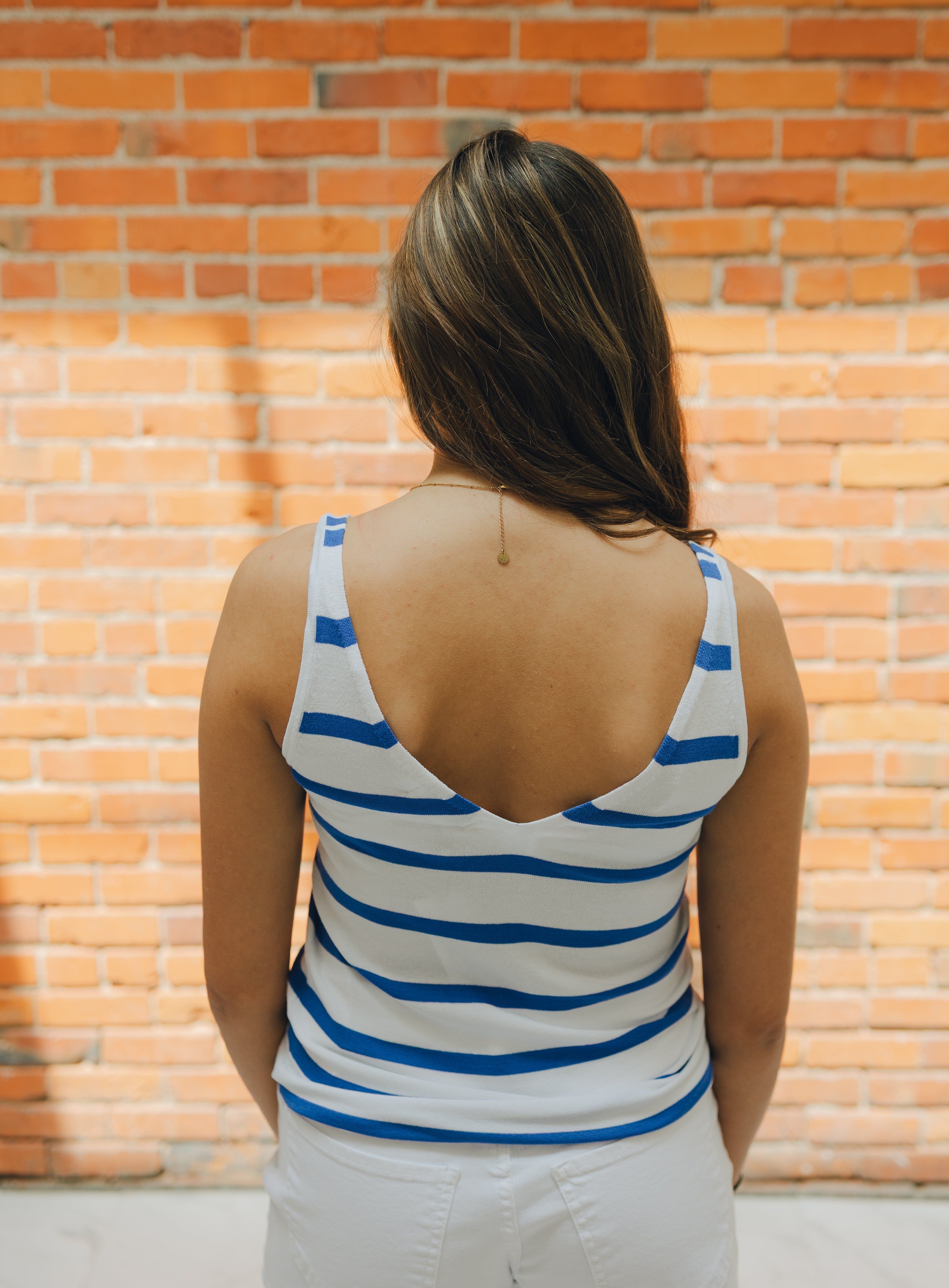 Get ready to turn heads with the Molly Bracken Blue Striped Knitted Tank! This tank top features wide straps and a slim fit for a flattering look, while the striped design adds a touch of uniqueness. Perfect for any casual occasion, it's a must-have for any fashion-forward wardrobe.