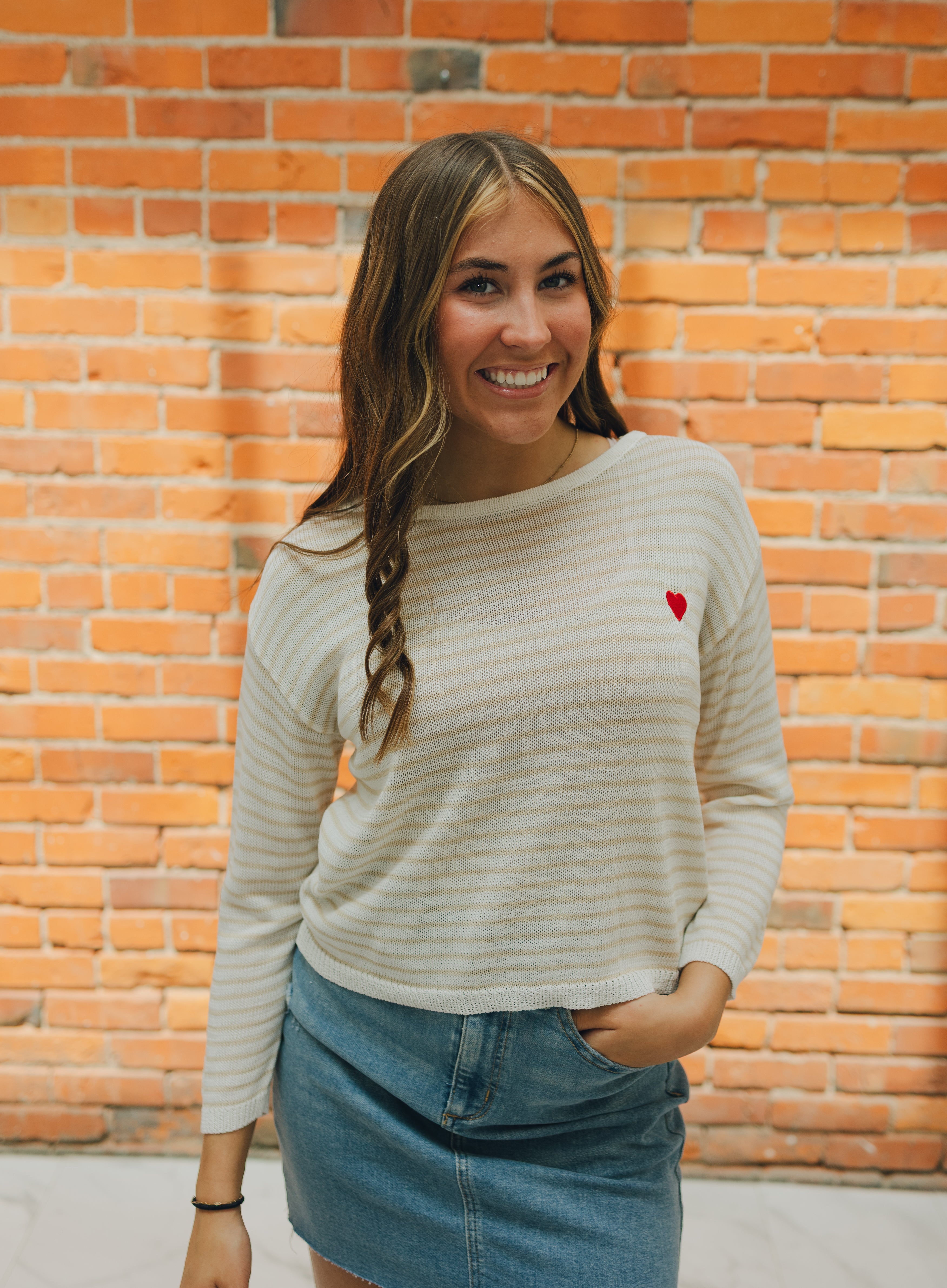 Wrap yourself in cozy charm with the Molly Bracken Cream W/Heart Sweater. Its soft cream fabric and adorable heart detail add a touch of cuteness to your everyday look. Perfect for layering or wearing solo, this sweater brings warmth and playful style to any outfit.