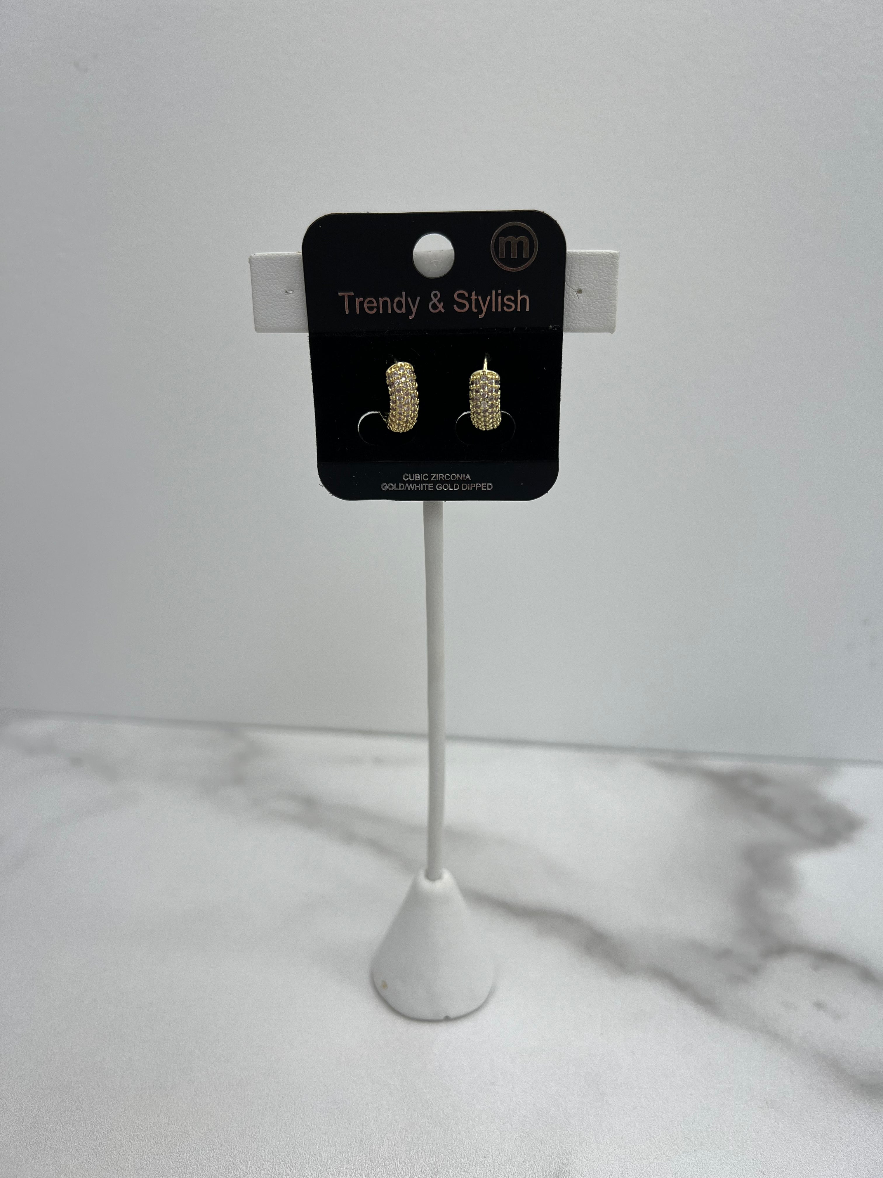 Expertly crafted with a stunning pave design, these gold hoop earrings add a touch of elegance to any outfit. Elevate your style with these timeless and sophisticated earrings that are perfect for any occasion.