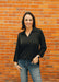 Pearl Cuff Button Satin Top - Black