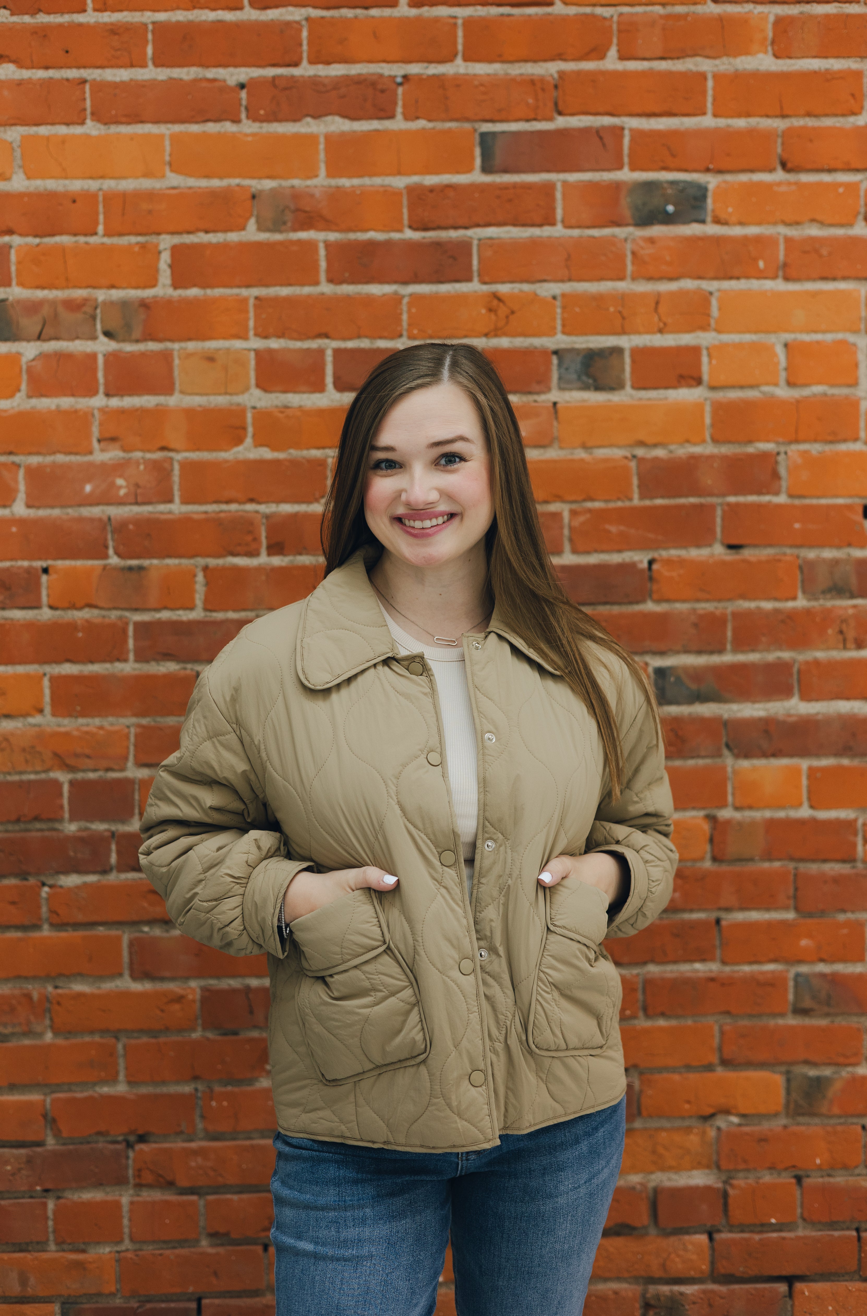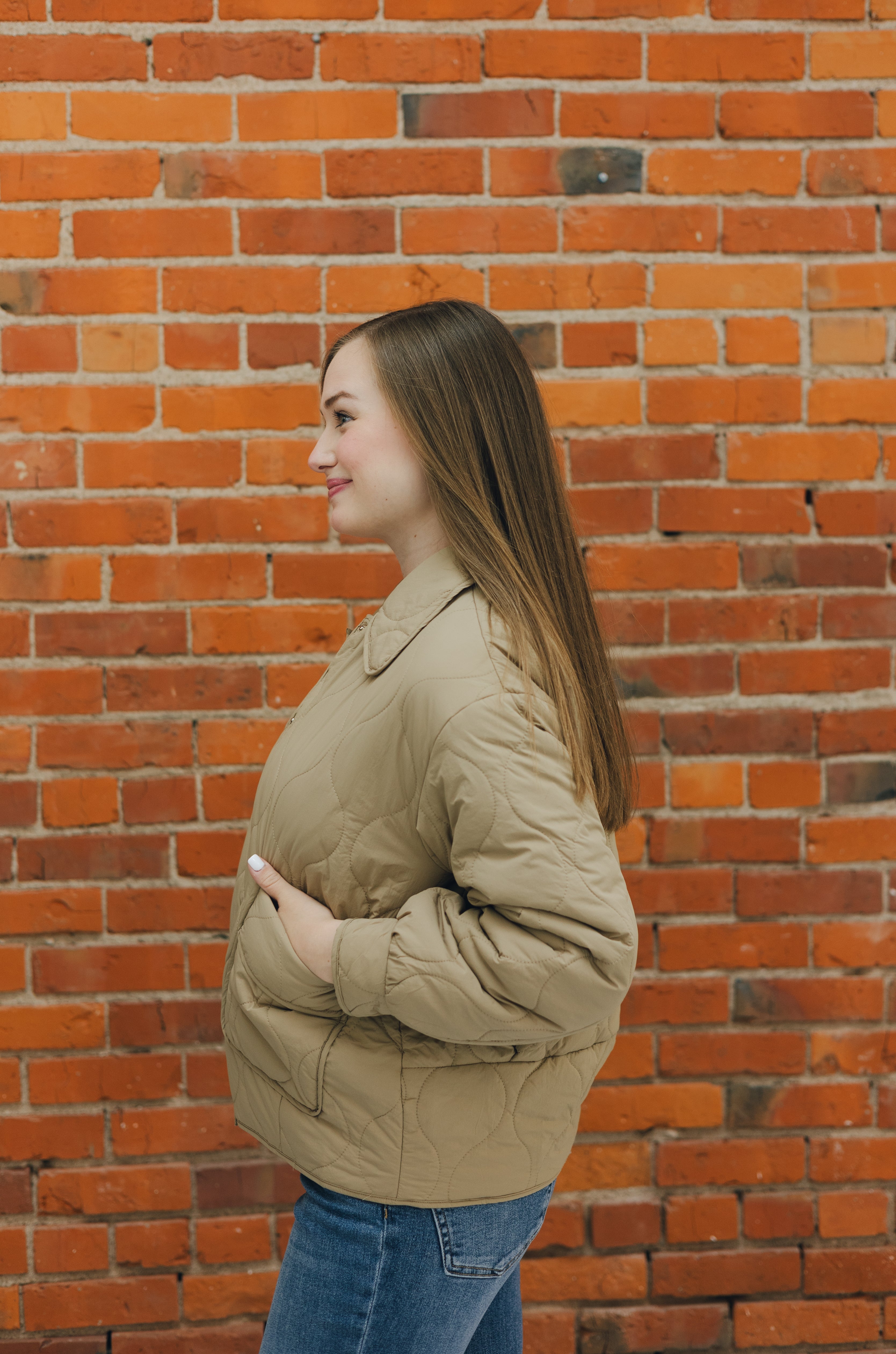 Stay warm and stylish in our Quilted Jacket, designed with a classic silhouette and a luxurious quilted finish that adds texture to any outfit. Featuring practical pockets and a lightweight feel, this jacket is perfect for layering during transitional weather while ensuring you look effortlessly chic.