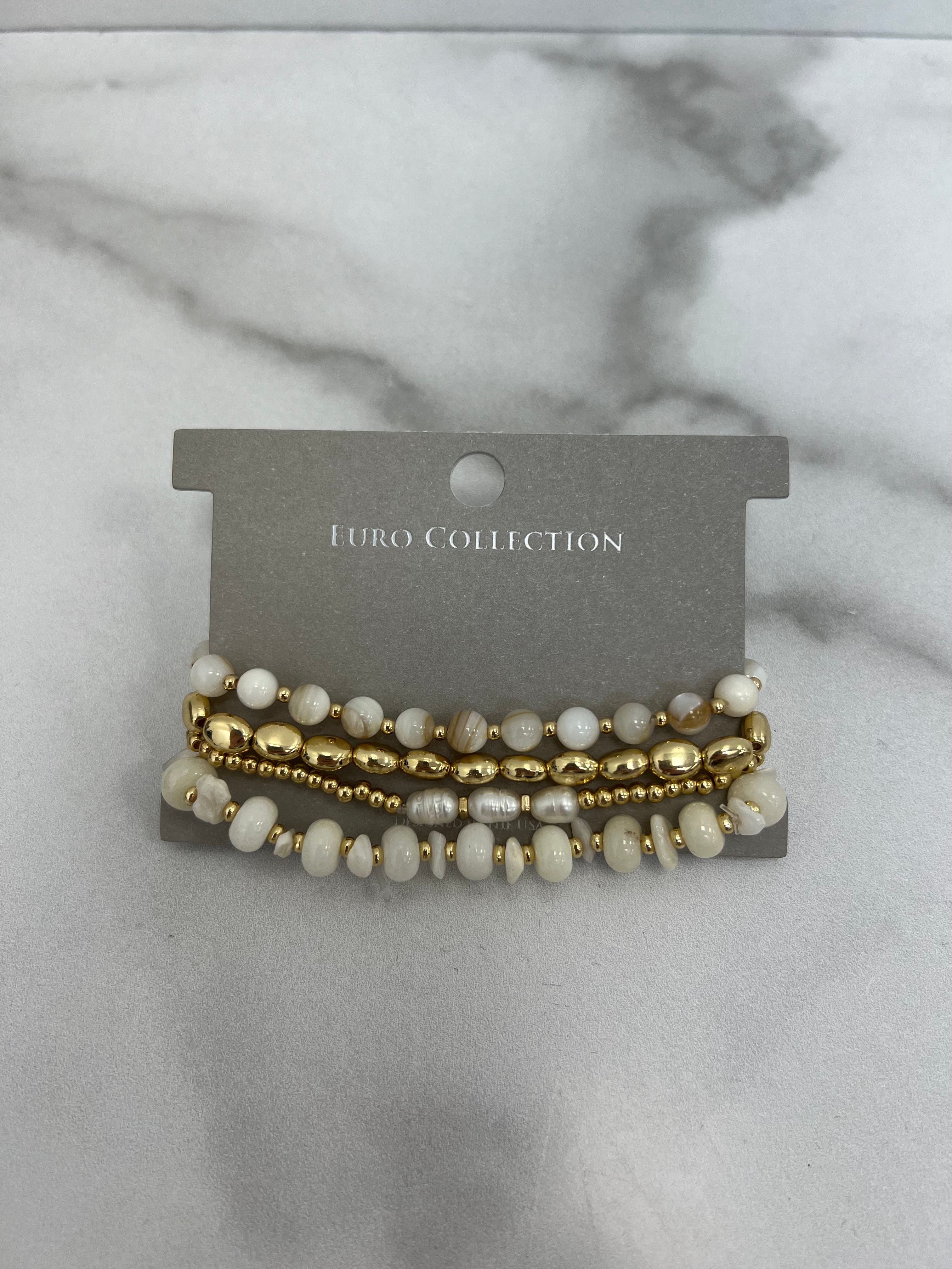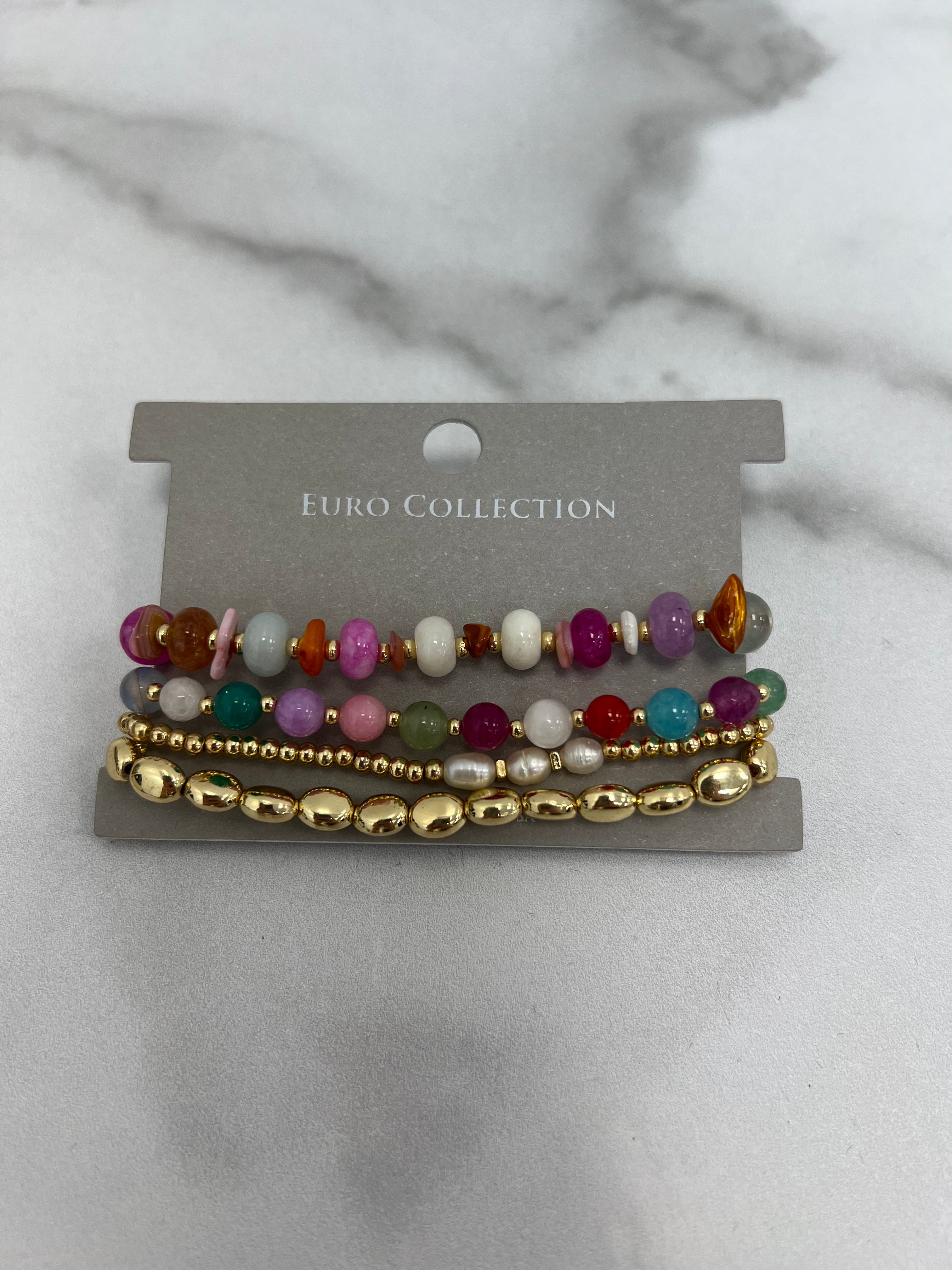 This set of 4 beaded stretch bracelets is the perfect addition to any jewelry collection. The stretch design allows for a comfortable fit, while the beads add a touch of elegance. Handcrafted with care, these bracelets are versatile and can be worn separately or stacked for a trendy look.