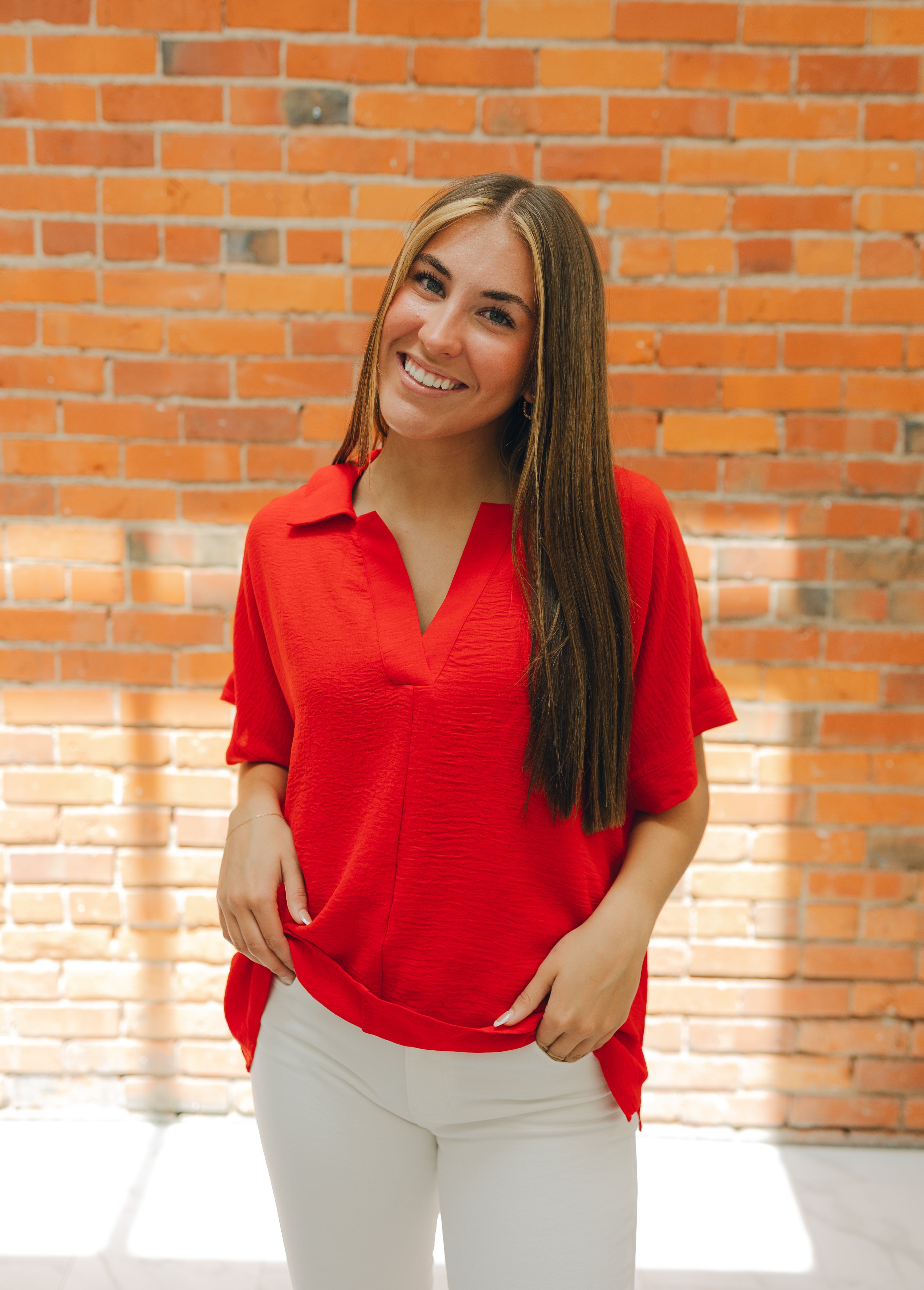 Effortlessly chic and oh-so-comfy! This solid top features a stylish open collared neckline, relaxed dolman sleeves, and subtle back wrinkle detail for an elevated touch. With banded cuffs and a lightweight, non-sheer feel, it’s the perfect go-to piece for any occasion!