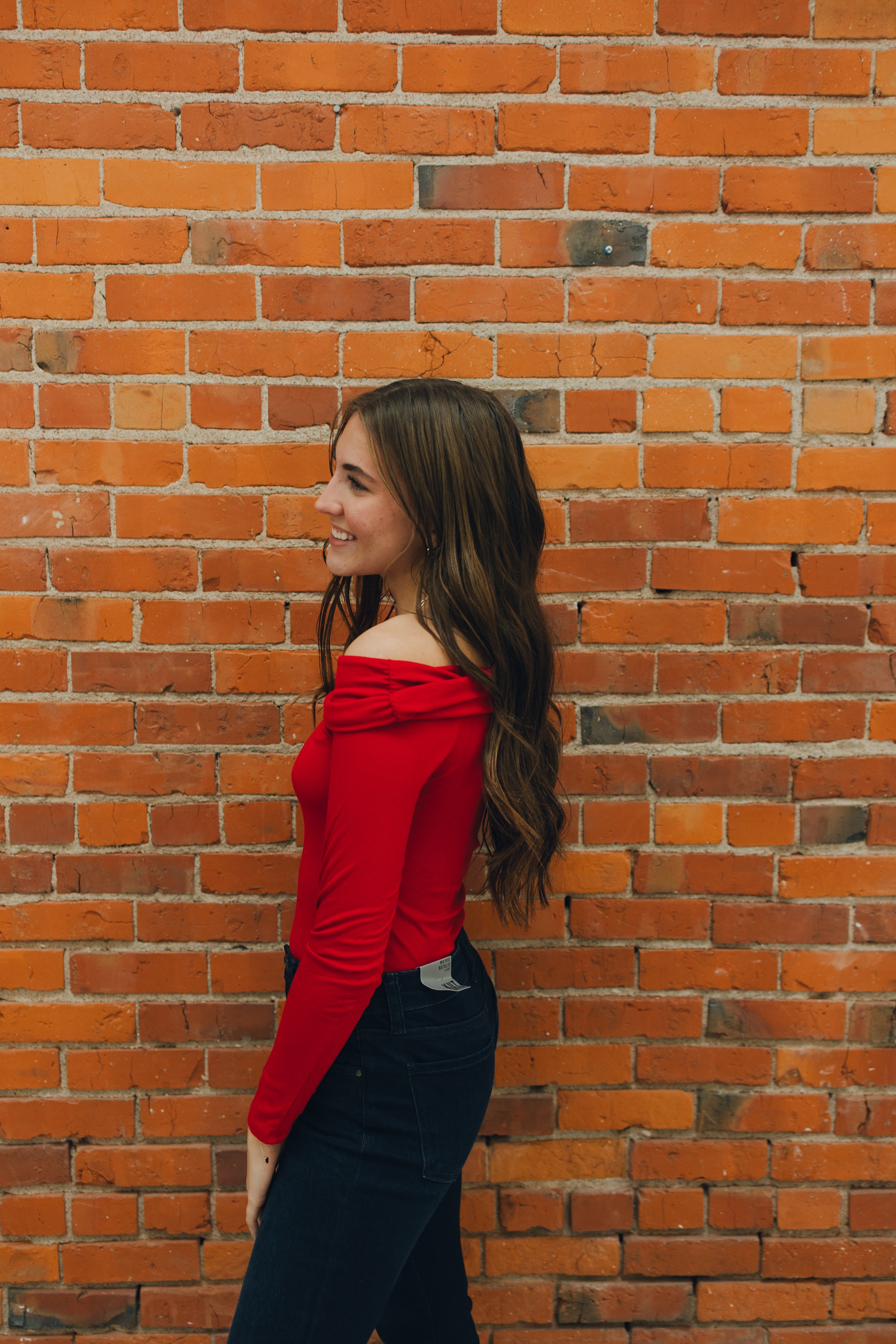 Slip into effortless elegance with this fitted bodysuit, crafted from "second skin" baby rib fabric for a smooth, contouring fit. The off-the-shoulder design with a shirred bodice overlay adds a touch of romance, while the lined bodice, thong-style bottom, and snap closure ensure both comfort and ease.
