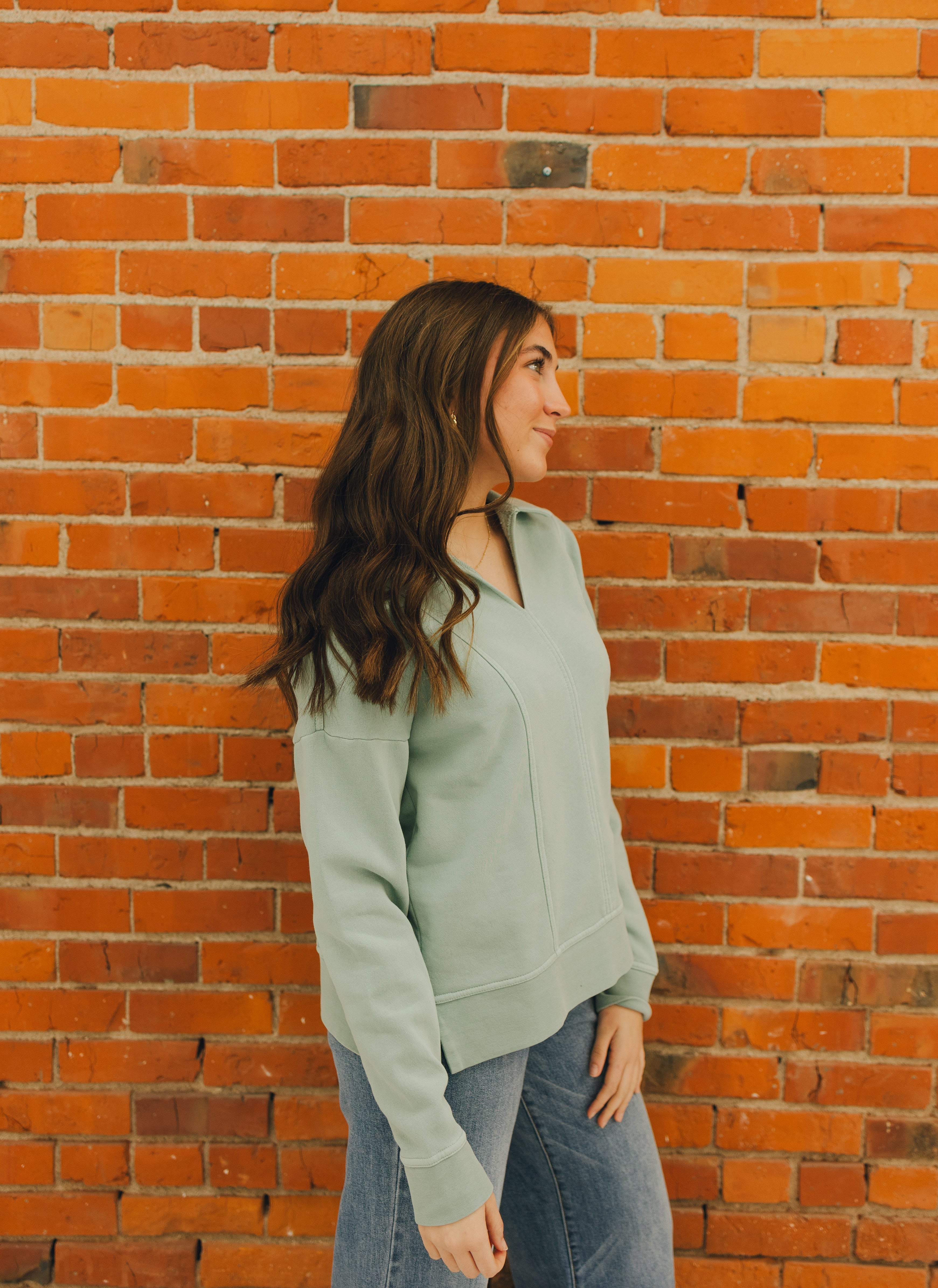 Cozy for on-the-go or lounging, this sweatshirt features a soft, cotton fabrication in an oversized silhouette with a drop shoulder silhouette and a collared v-neckline.