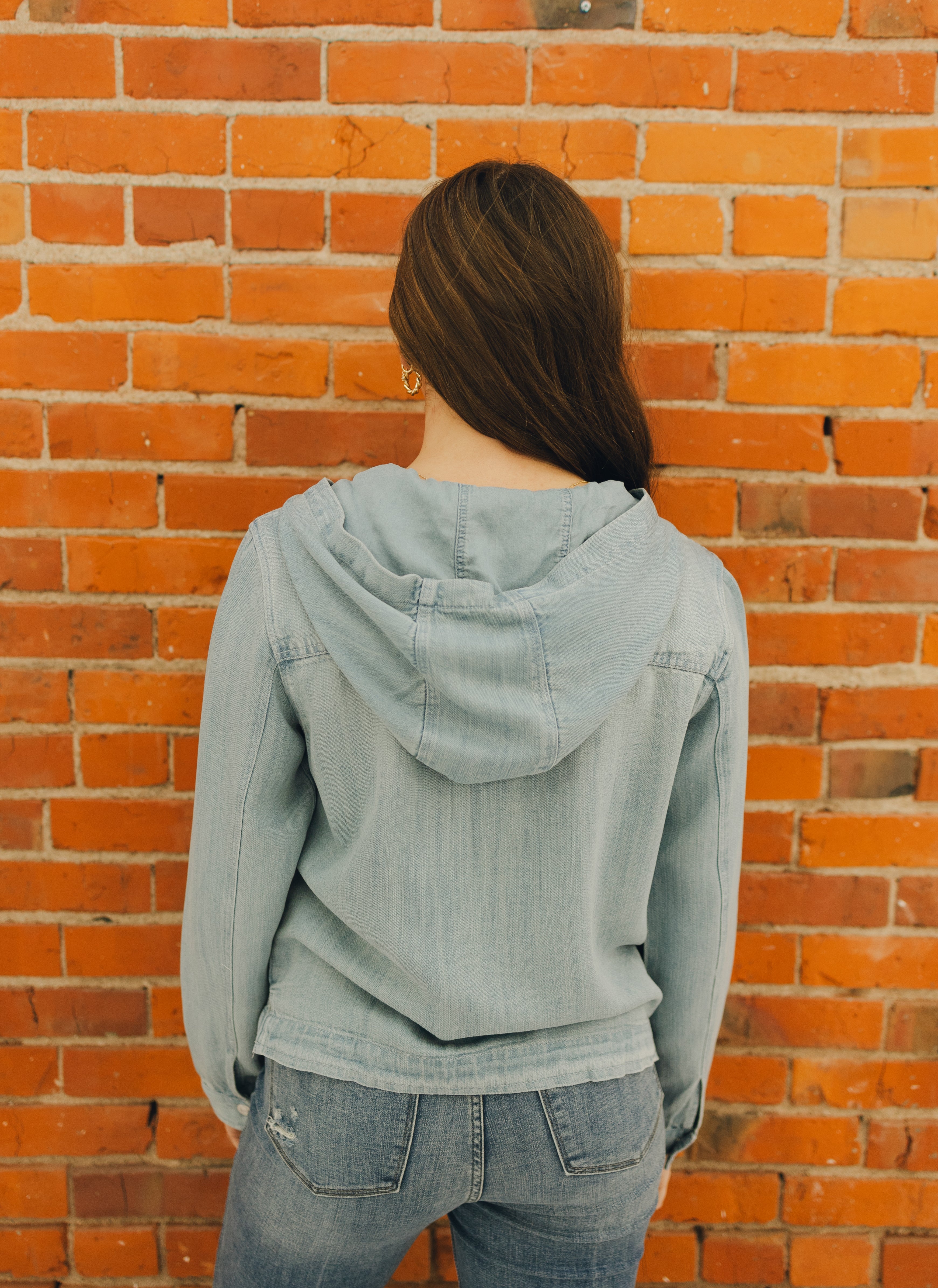 Our fan favorite Jackie Jacket now with an added hood. Made with our super soft Tencel Lyocell, this classic denim jacket is a wardrobe staple!