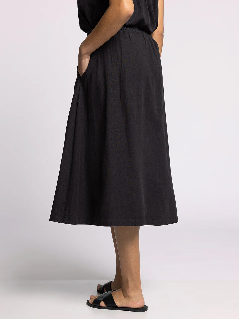 Found: the perfect effortless midi skirt , featured in a classic A-line fit and effortless pull-on design with box pleat details that gives a flowy silhouette. Wear with the Lydia tank to make it a matching set!
