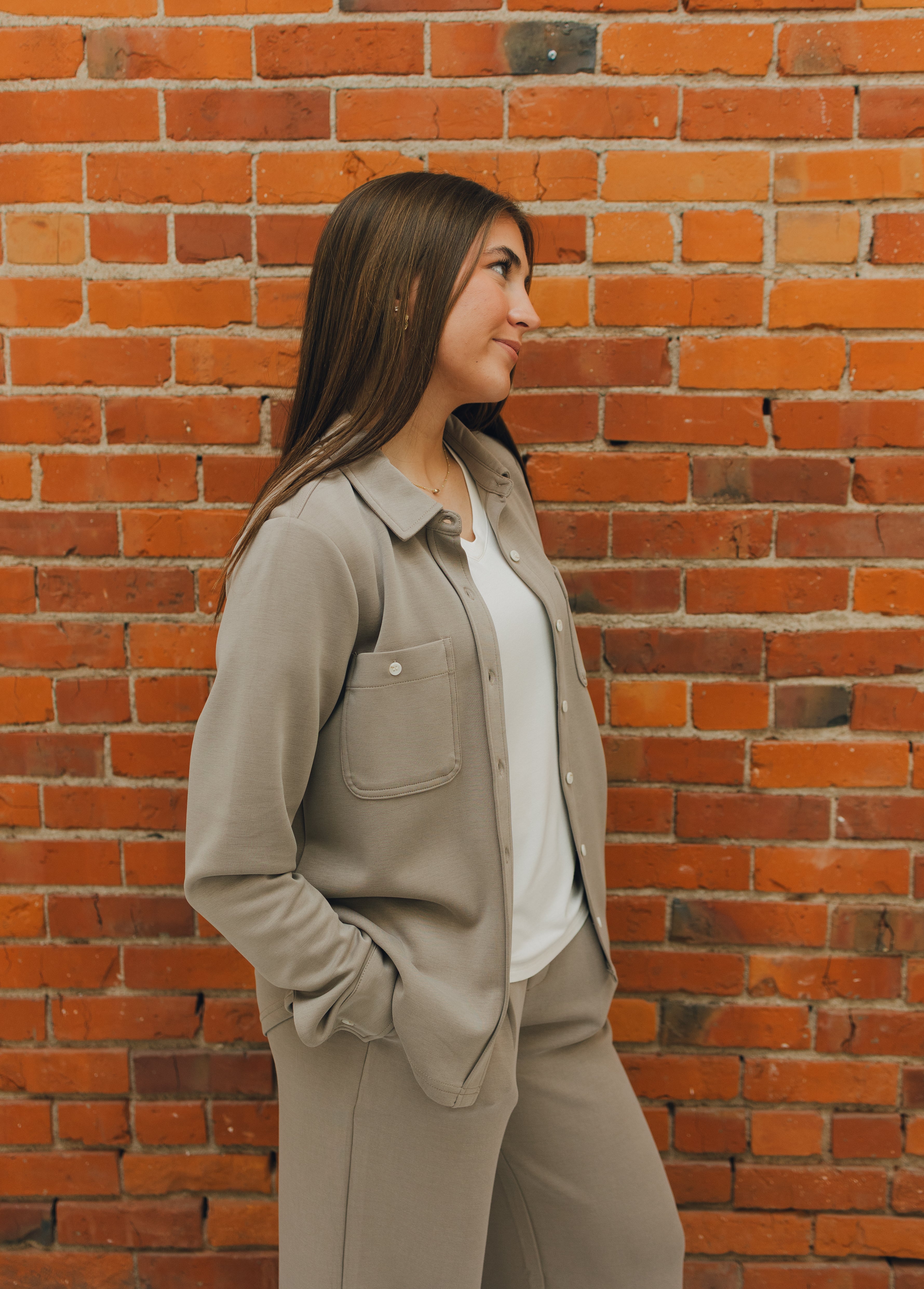 Not your average button up, this one feels like a soft sweatshirt! Featured in our super comfy scuba fabric with a button front closure and dual patch pockets. Wear with our Mildred Pant to complete the matching set.