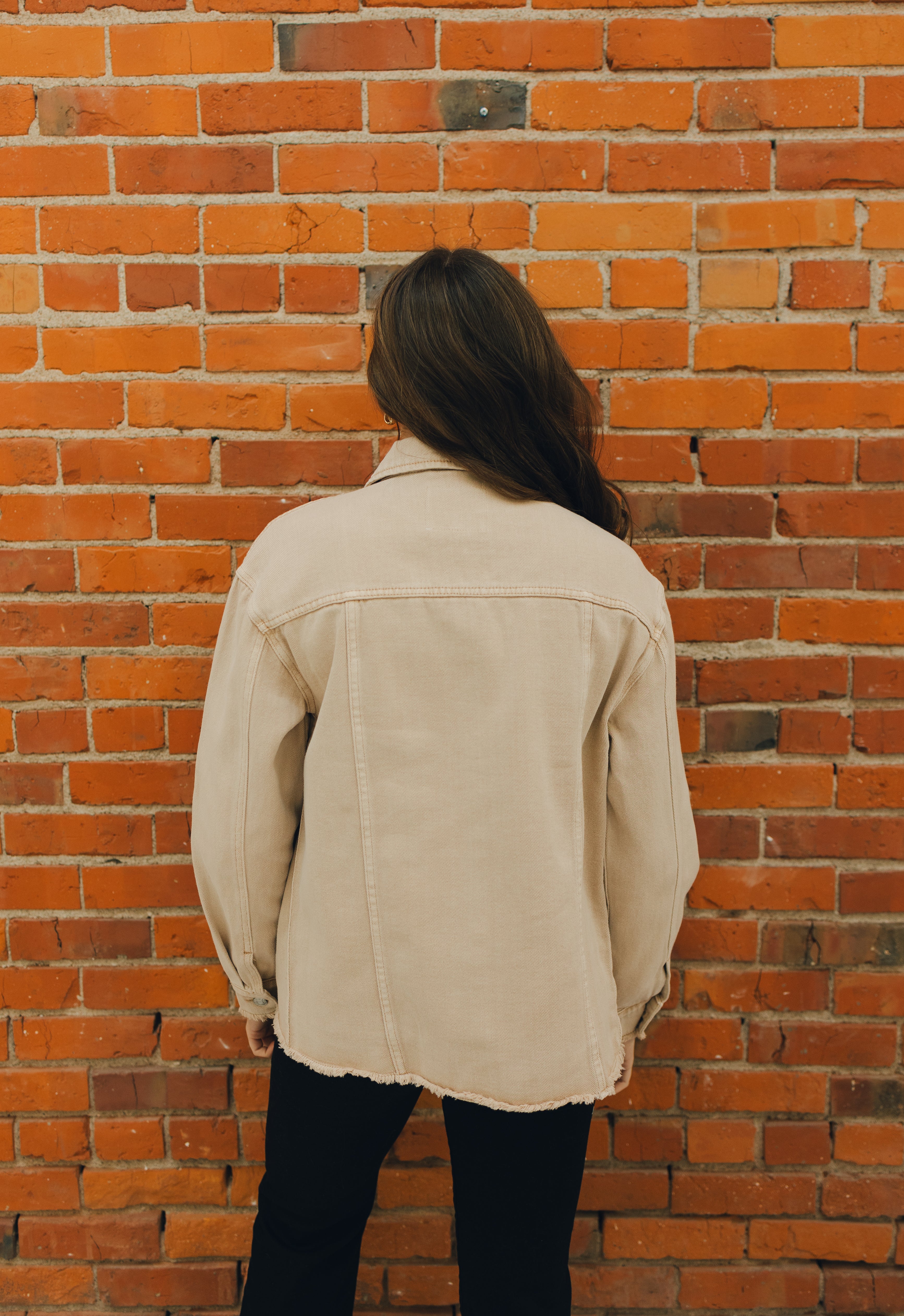 Take your denim jacket game to the next level with this so cool version featuring dropped shoulders for shape, dual side and patch pockets and a frayed hem finish for that lived in look.