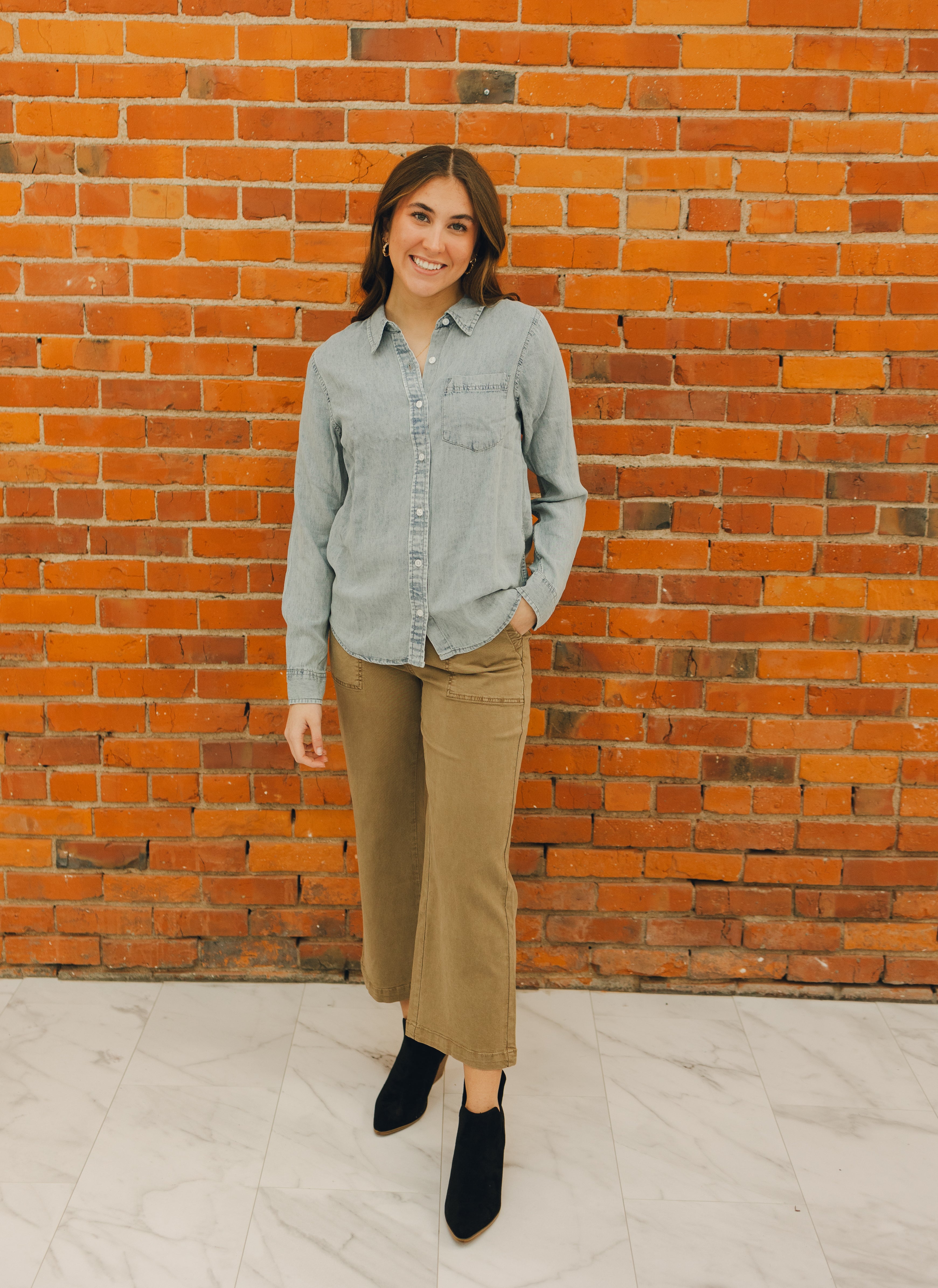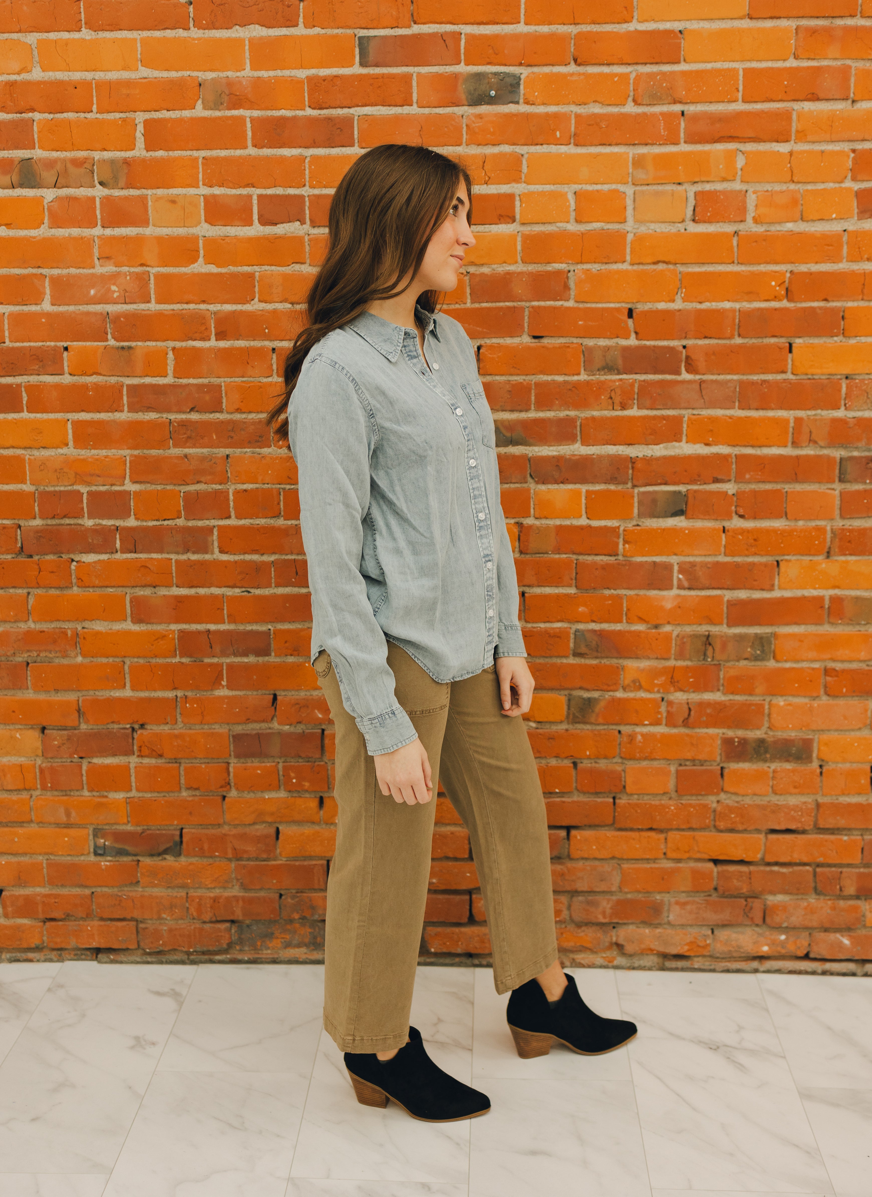 A timeless staple in every outfit, these classic pants are featured in a mid-rise, front zip closure, and slight wide-leg silhouette.