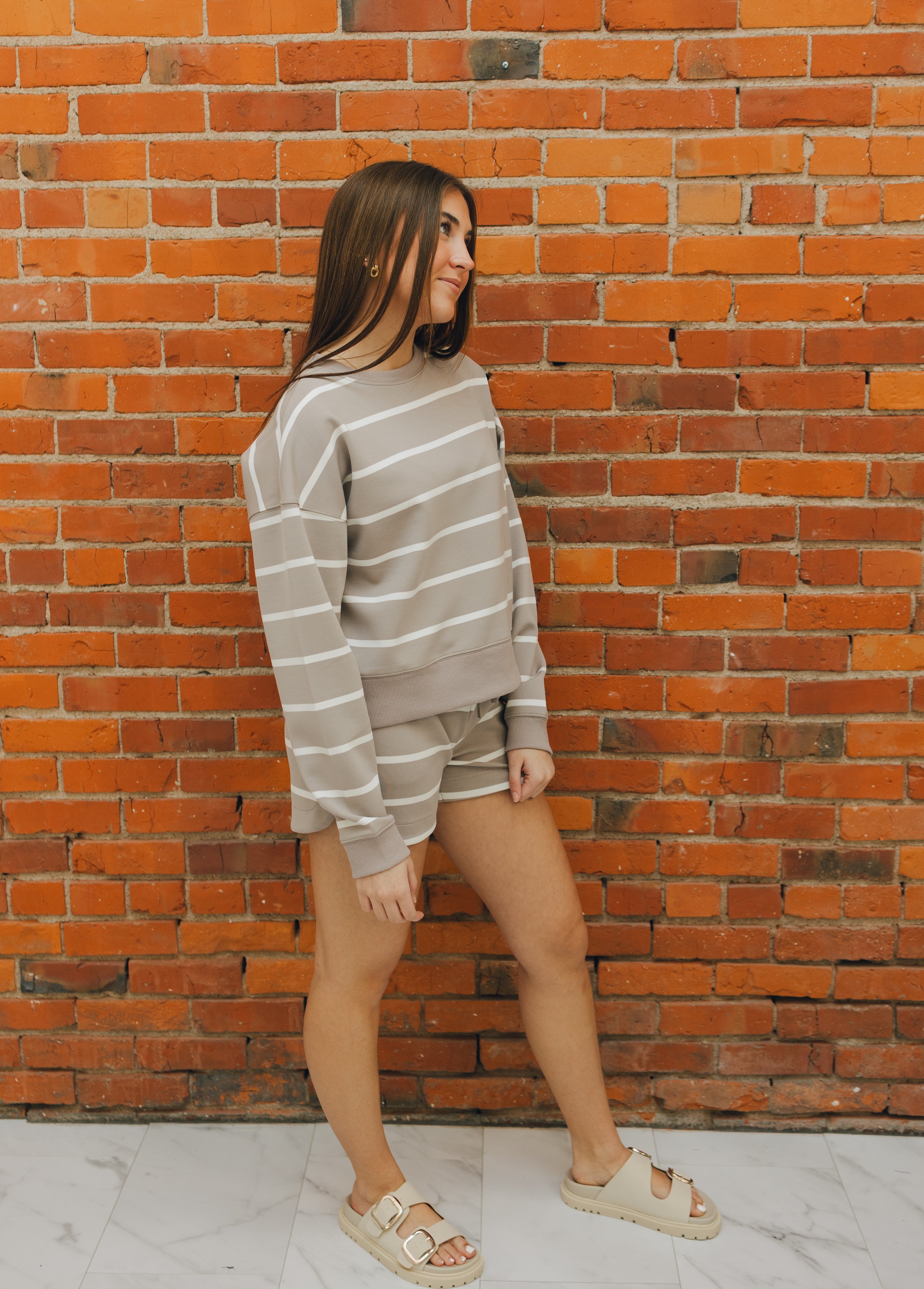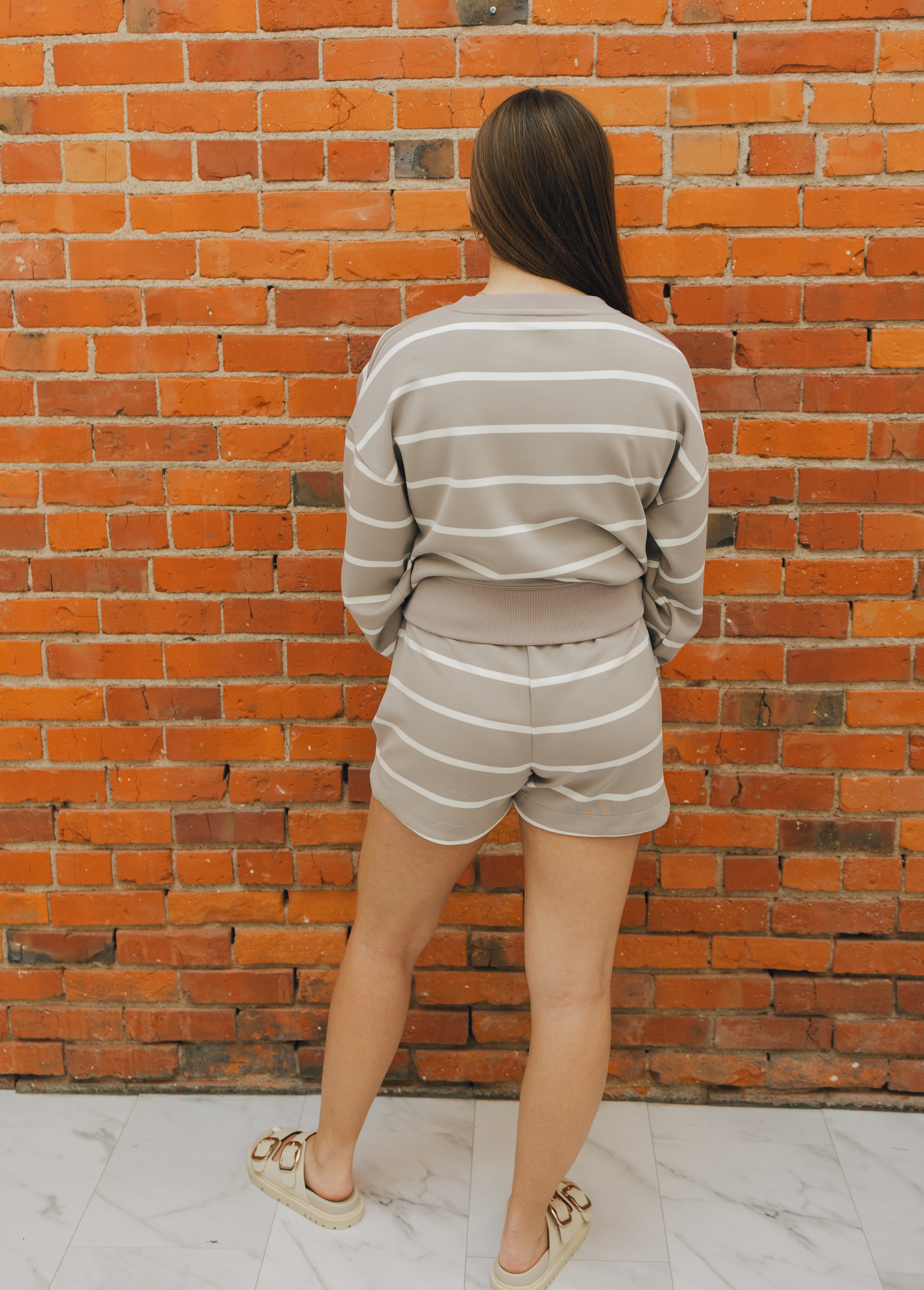 So sporty and comfy, these soft shorts are featured in a high-rise fit and dolphin hem detailing with an elastic waistband and dual side pockets. Wear as a set with the Corrie tee.