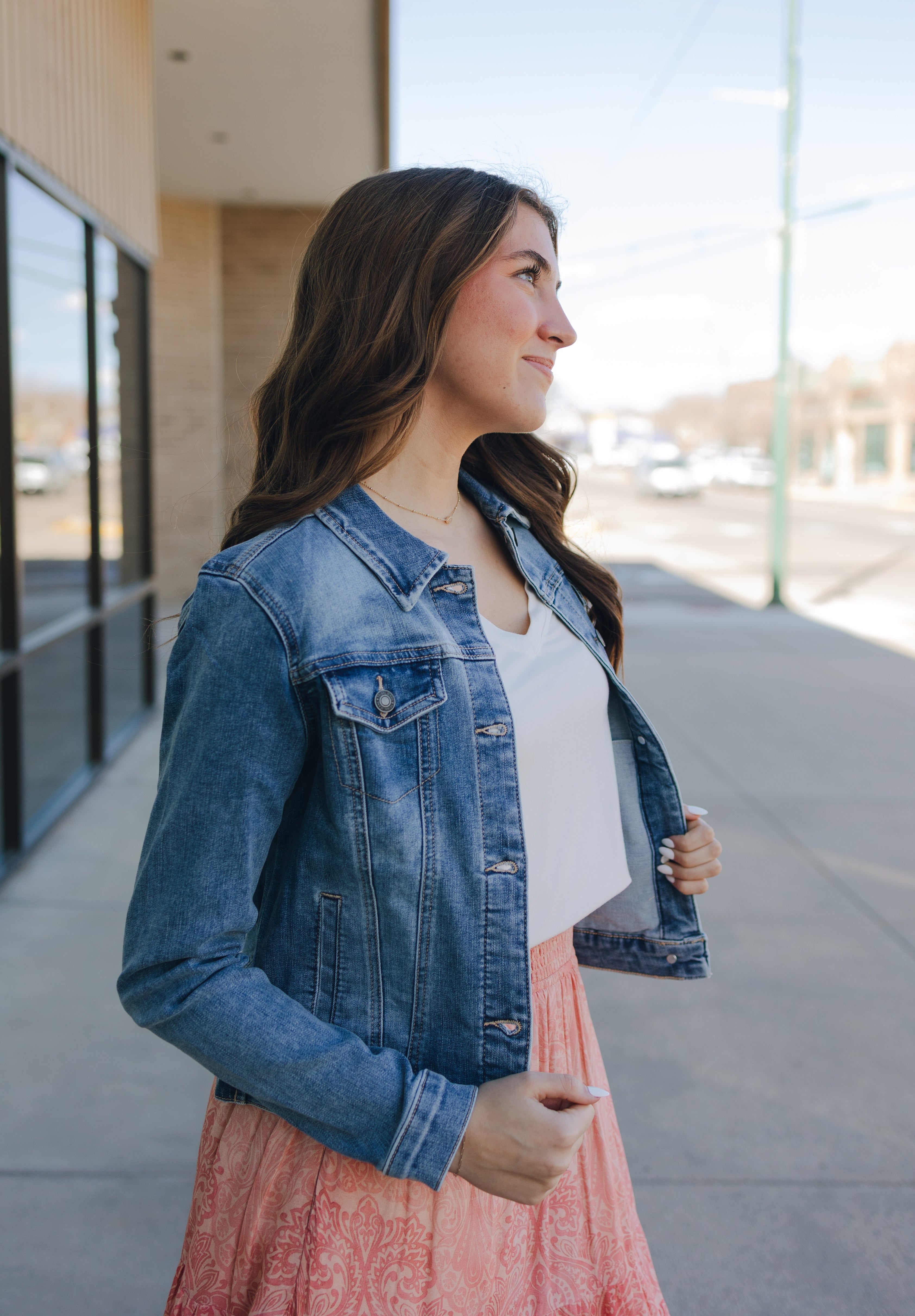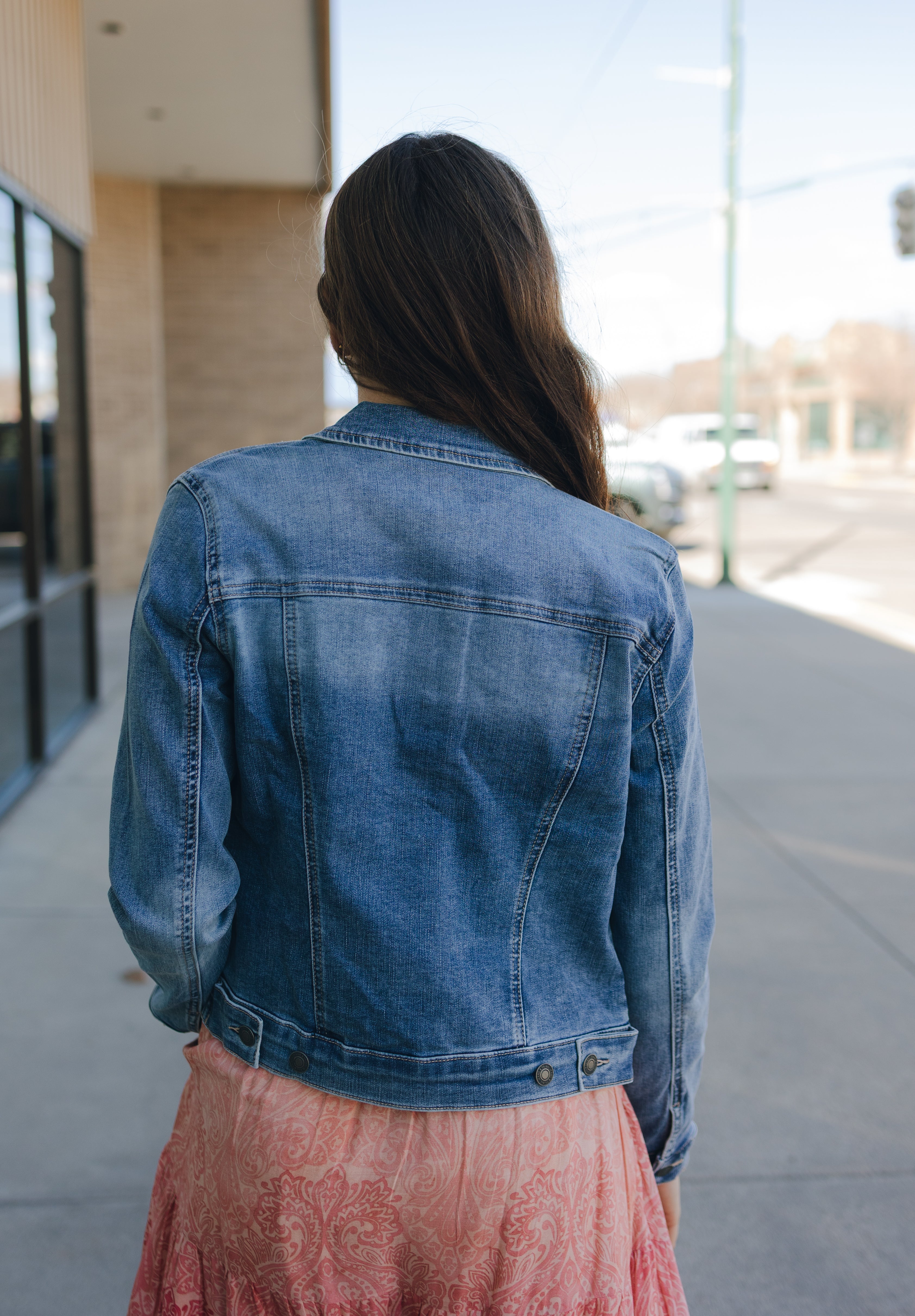 An update on a classic fit! Introducing our NEW and improved Classic Denim Jacket! Made with polyester. New improvements but the same reliable fit; Soft stretch denim, five buttons, two faux flap front pockets and two functional slash pockets and button cuffs. This will be your new favorite!
