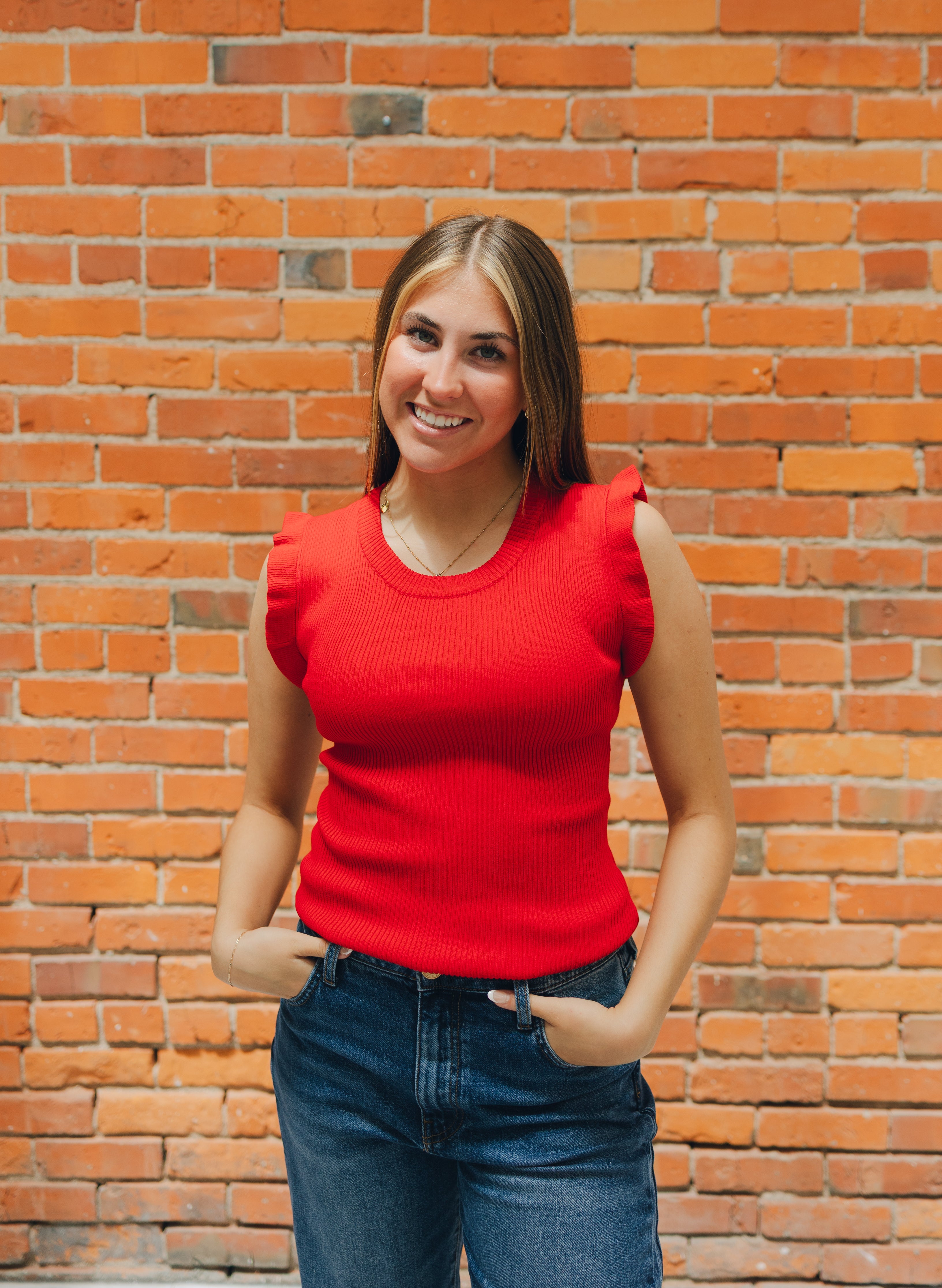 Elevate your everyday style with our Viscose Ruffle Trim Ribbed Tank! This playful piece features delicate ruffles that add a flirty touch to the classic tank silhouette. The soft viscose fabric hugs in all the right places while the ribbed texture provides just enough stretch for all-day comfort. Perfect for layering or wearing solo on warm days!